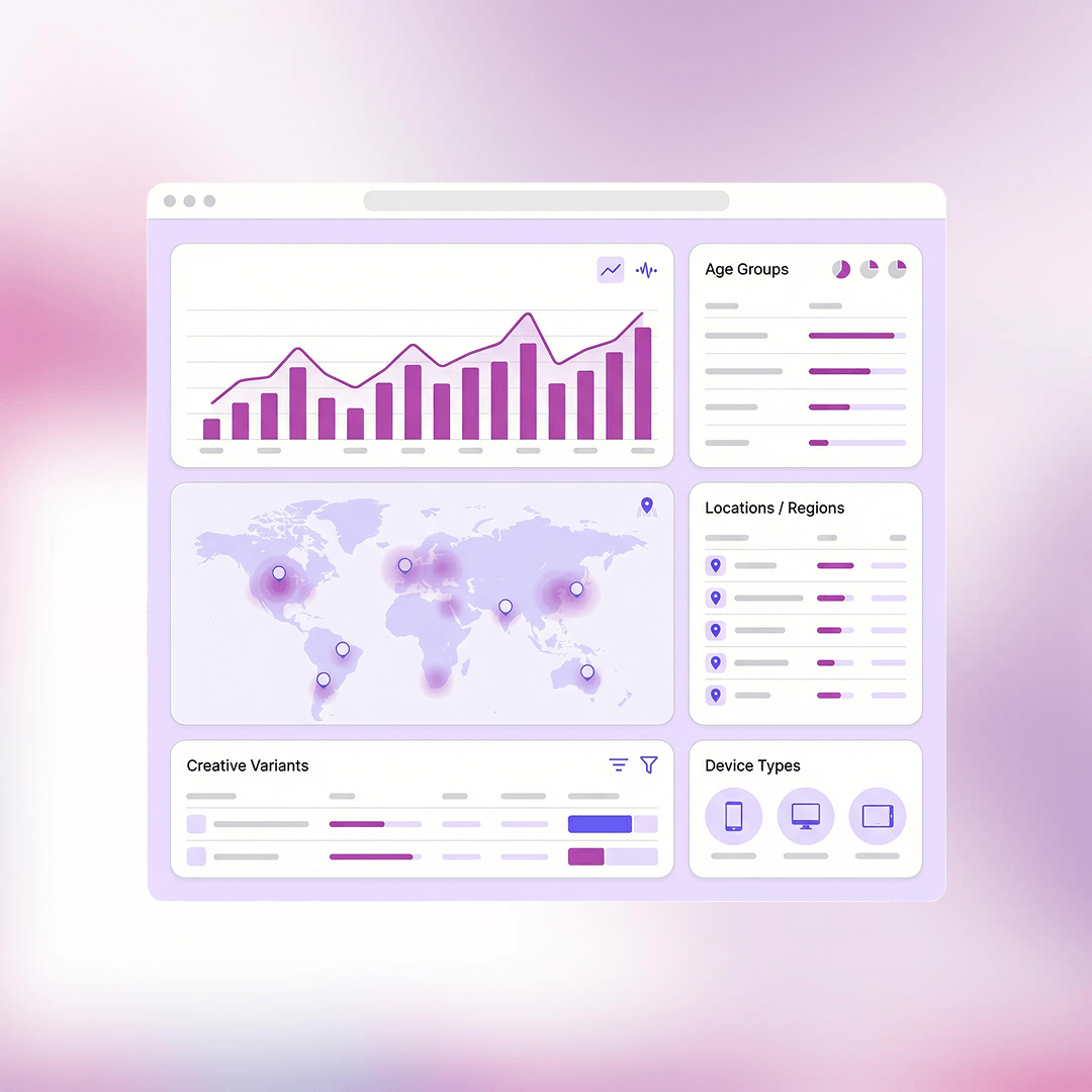 Visualize and track campaign performance with continuous updates and clear breakdowns across age, location, creative type, and device, aligned with your dealership’s KPIs.